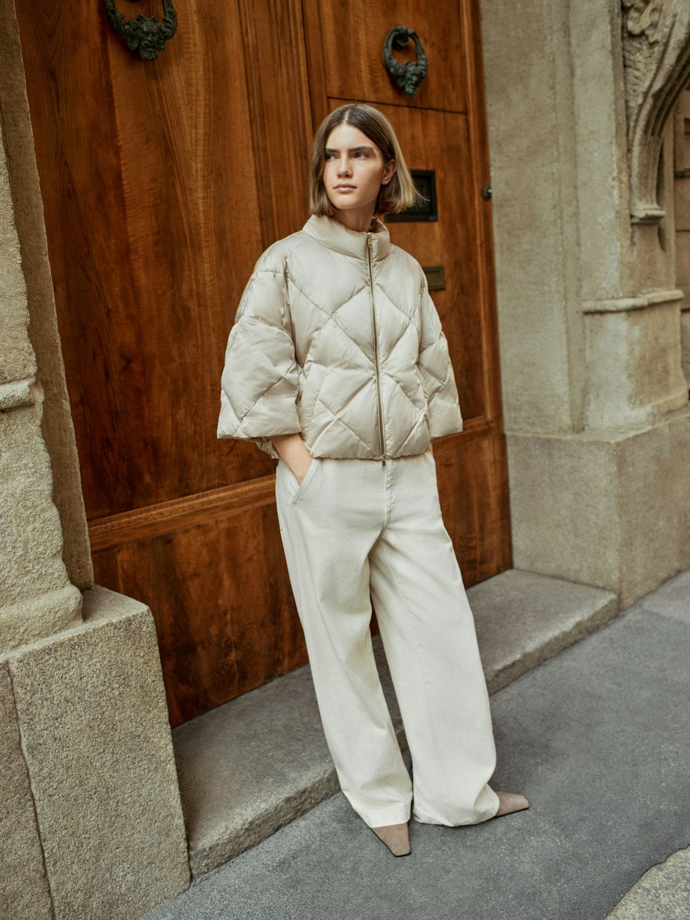 das Model ist 1,75 m und trägt Größe 36