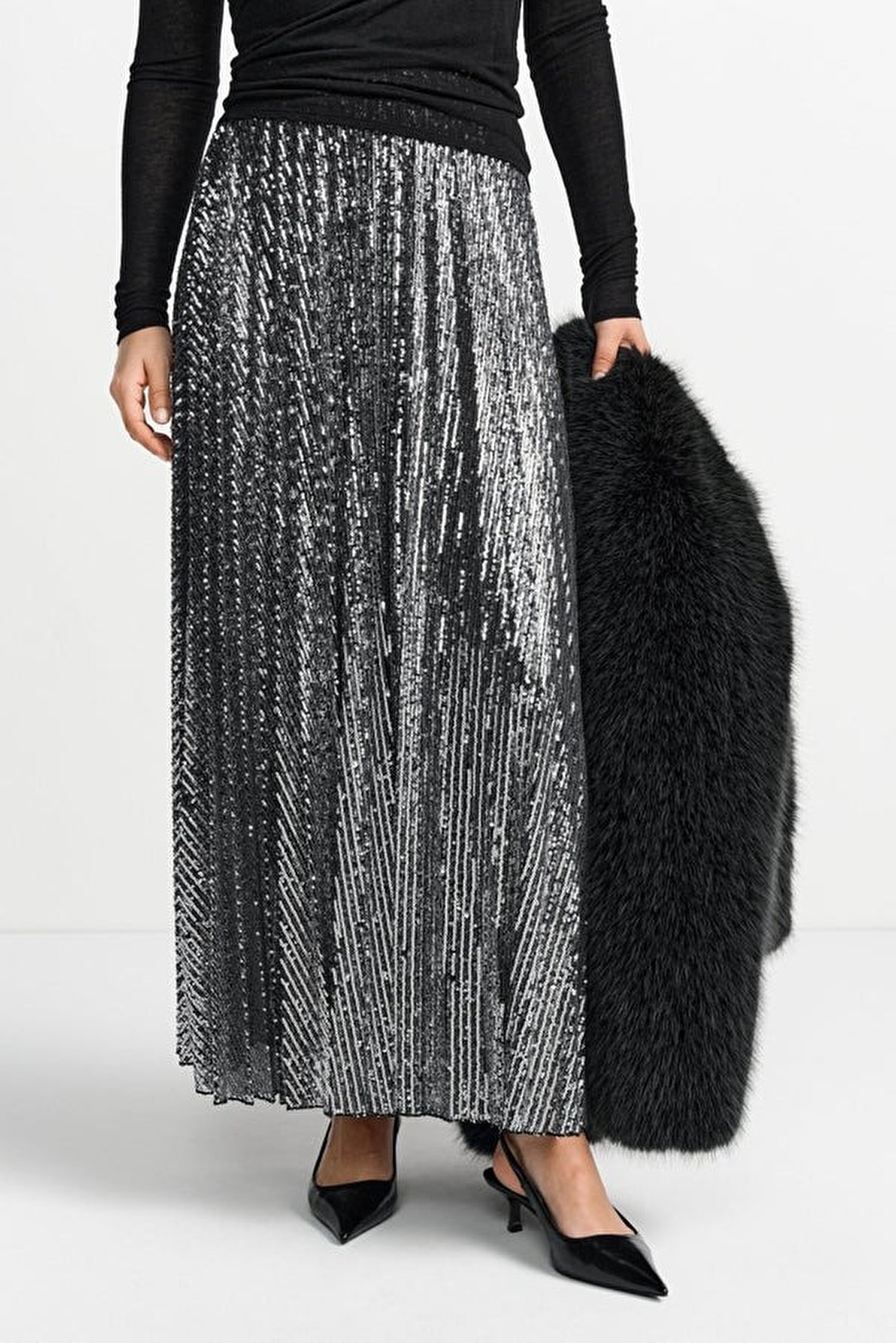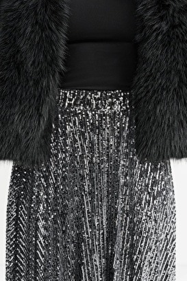 Neu | Plissee-Midirock mit Pailletten